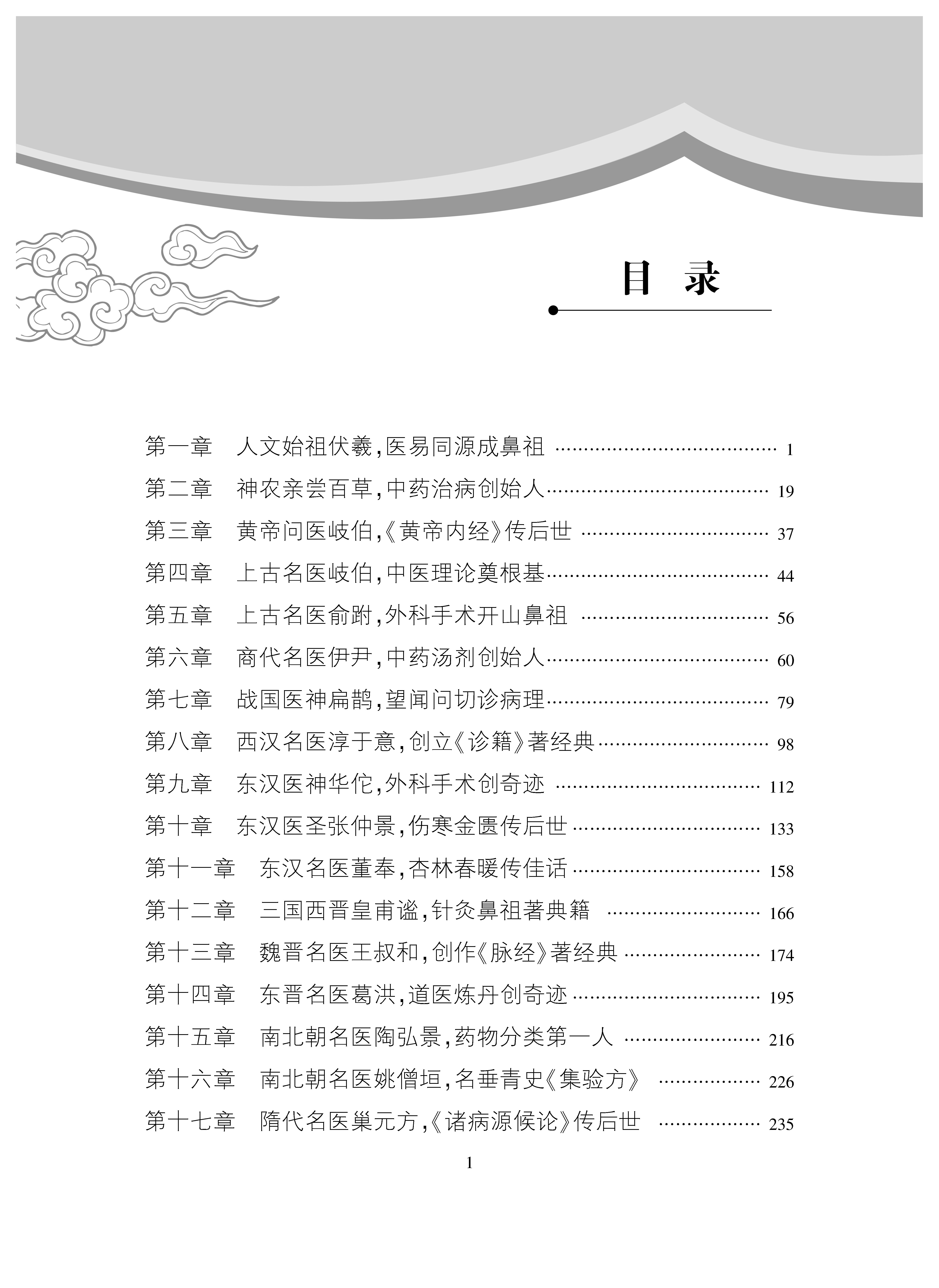 祖国医学源远流长,出现过许多杰出的医学家,他们以自己高超的医术救死扶伤,治病救人, 为后人所敬仰。讲好这些故事,让更多的人了解中医,让中医药造福更多的人,增强我们的文化自信。本书以人物传记和传奇故事的形式,再现了中国历史上40位中医先祖圣贤的传奇故事和伟大功绩,如“人文始祖伏羲,医易同源成鼻祖”“神农亲尝百草,中药治病开先河”“黄帝问医岐伯,《黄帝内经》传后世”等,将中医发展过程中的代表性人物、著作以及经典故事进行介绍。他们的伟大功绩,他们的传奇故事,就像一个个镶嵌在中华大地的明珠,熠熠生辉,护佑着我们的五千年文明绵绵延续。